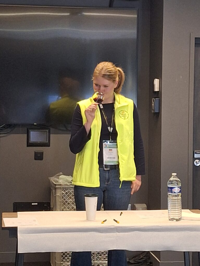 Après les deux premiers tours, les trois finalistes du concours international ont été désignés : outre Marlene et Johannes, une candidate originaire d’Ukraine, a également pu participer à la finale. Tous les participants se sont montrés très motivés et ont réalisé d’excellentes performances lors de la dégustation à l’aveugle ! Pour la seconde fois dans l’histoire du concours de dégustation, deux participants de la même équipe ont occupé les 1re et 3e places du podium ! Marlene Karsbach remporte la 1ère place et son camarade Johannes Mett la 3ème place.