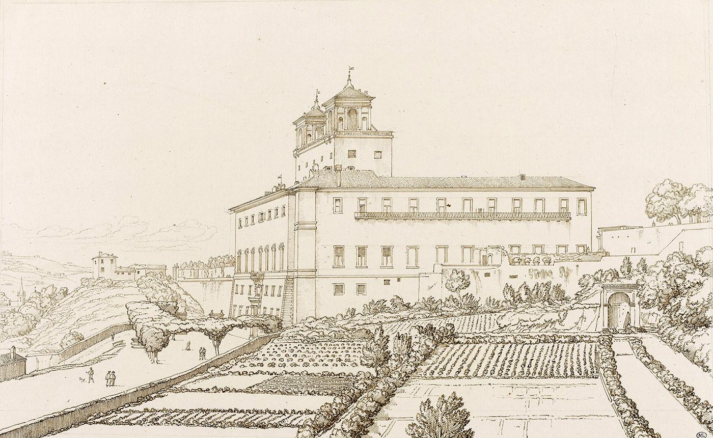 Illustration de tête d’article : Dessin datant du XIXème siècle, Vue de la Villa Medicis à Rome,