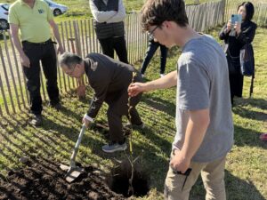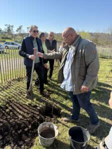 Ainsi, Monsieur Claude Vigneron, responsable du partenariat avec le Japon au sein de l’établissement, a obtenu des greffons de la variété auprès du verger conservatoire du Sénat dans le jardin du Luxembourg. Avec les élèves du lycée, il a procédé à la greffe sur des portes greffés obtenus à partir de semis réalisés sur place. Les membres du Conseil d’Administration de l’établissement, la mairie de Saint-Genis-Laval étaient présents pour l’occasion. Invité d’honneur, Monsieur Ogata, Consul du Japon à Lyon a procédé à la plantation d’une poirier qui a été offert par le Sénat au lycée de Pressin. Les différents acteurs présents ont participé à cette plantation et notamment Monsieur Igor Navarro directeur du lycée qui soutient vivement le partenariat avec le lycée de Minabe dans la province de Wakayama. Ce lycée est pour sa part spécialisé dans la production de prunes ume et transforme sur place en prunes umeboshi, incontournable de la cuisine japonaise. Les deux établissements s’appuient donc sur l’arboriculture dans le cadre de leur partenariat.